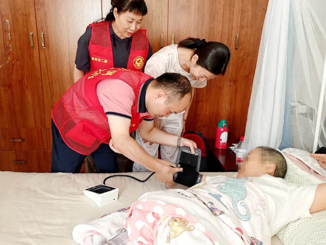 許阿姨患有心臟病、高血壓及腰椎疾病多年,天氣炎熱她的血壓一直不穩(wěn)定,家屬通過微信群向科室副主任楊光咨詢。7月16日,楊光在了解此情況后,與李慧新主任商量,決定帶醫(yī)療團(tuán)隊(duì)一起前往許阿姨家中,為她進(jìn)行血壓測(cè)量、心臟聽診等檢查,對(duì)其日常生活中的注意事項(xiàng)進(jìn)行了詳細(xì)的指導(dǎo)。同時(shí),還對(duì)許阿姨的用藥方案和康復(fù)計(jì)劃進(jìn)行了相應(yīng)的調(diào)整。