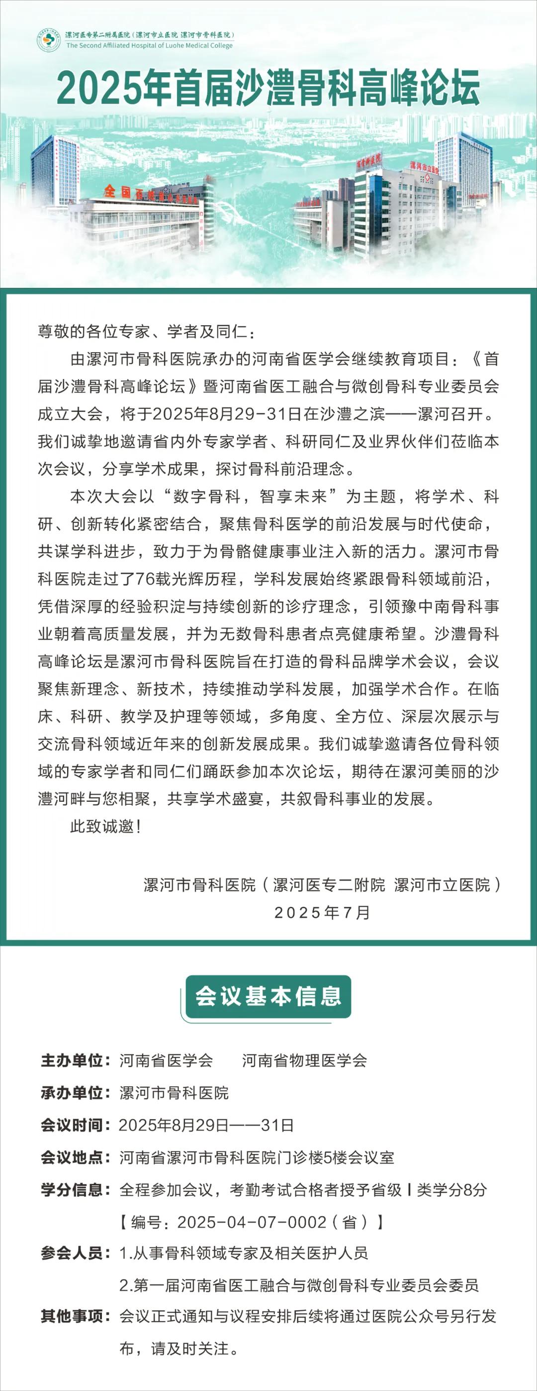 會(huì)議預(yù)告 | 2025年首屆沙澧骨科高峰論壇召開(kāi)在即