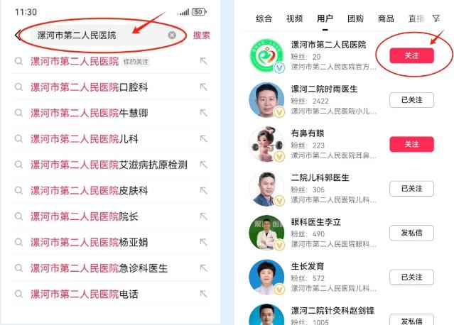 用戶名“漯河市第二人民醫(yī)院”或者抖音賬號71780395553