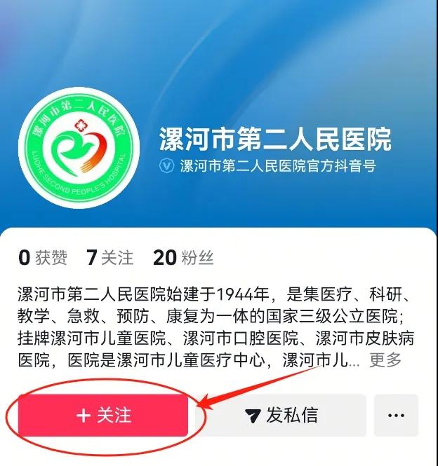 “漯河市第二人民醫(yī)院”官方抖音號開通啦!