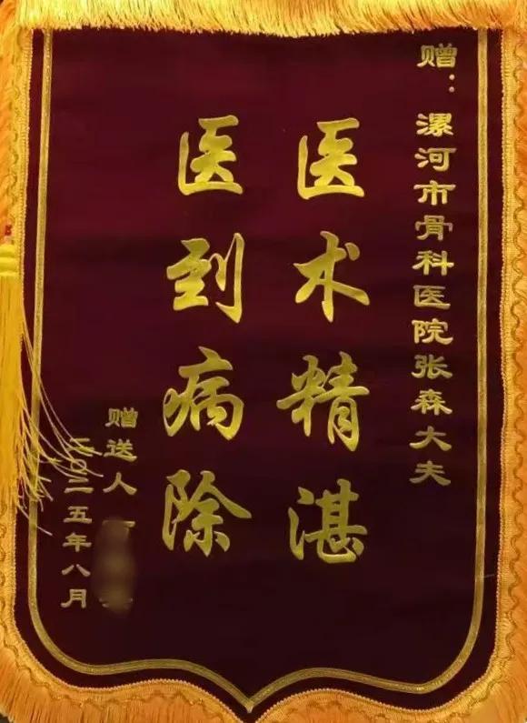 近日,一面繡著“醫(yī)術精湛,醫(yī)到病除”的錦旗,帶著沉甸甸的感激,送到了漯河醫(yī)專二附院(漯河市骨科醫(yī)院、漯河市立醫(yī)院)康復科張森醫(yī)生手中。這不僅是患者對治療效果的肯定,更是對他所在團隊的專業(yè)能力與人文關懷的由衷贊譽。