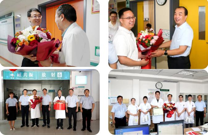每到一個科室,醫(yī)院領導都將精心準備的鮮花、香甜的蛋糕以及貼心的慰問品送到每一位醫(yī)師手中。一句句 “辛苦了”“注意休息”,讓醫(yī)師們深切感受到醫(yī)院的關懷與支持。院領導們高度肯定并贊揚了醫(yī)師們在臨床工作中的辛勤付出與無私奉獻。他們強調,醫(yī)務工作者是社會中最崇高的職業(yè)之一,醫(yī)師們憑借自己的專業(yè)智慧和汗水,日夜守護著患者的生命健康,是生命戰(zhàn)場上的 “最美逆行者”。