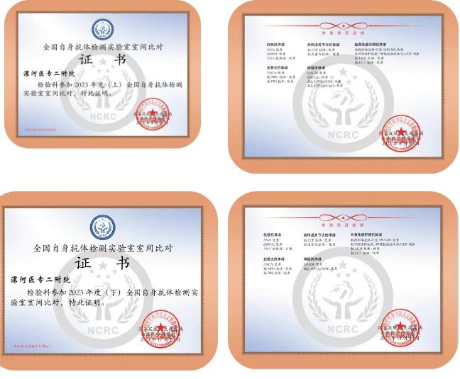 近日,漯河醫(yī)專(zhuān)二附院(漯河市骨科醫(yī)院、漯河市立醫(yī)院)檢驗(yàn)科自身免疫實(shí)驗(yàn)室在“國(guó)家皮膚與免疫疾病臨床醫(yī)學(xué)研究中心(NCRC)”組織的、北京協(xié)和醫(yī)院牽頭的全國(guó)自身抗體檢測(cè)實(shí)驗(yàn)室能力驗(yàn)證中,再次憑借卓越的檢測(cè)能力和穩(wěn)定的技術(shù)水平,斬獲合格證書(shū)。這已經(jīng)是自2023年以來(lái),連續(xù)3年獲此殊榮,充分說(shuō)明了醫(yī)院自身免疫實(shí)驗(yàn)室的檢測(cè)結(jié)果與全國(guó)251家實(shí)驗(yàn)室數(shù)據(jù)高度一致,達(dá)到國(guó)家級(jí)標(biāo)準(zhǔn)化水平,為臨床診斷提供了堅(jiān)實(shí)可靠的依據(jù)。
