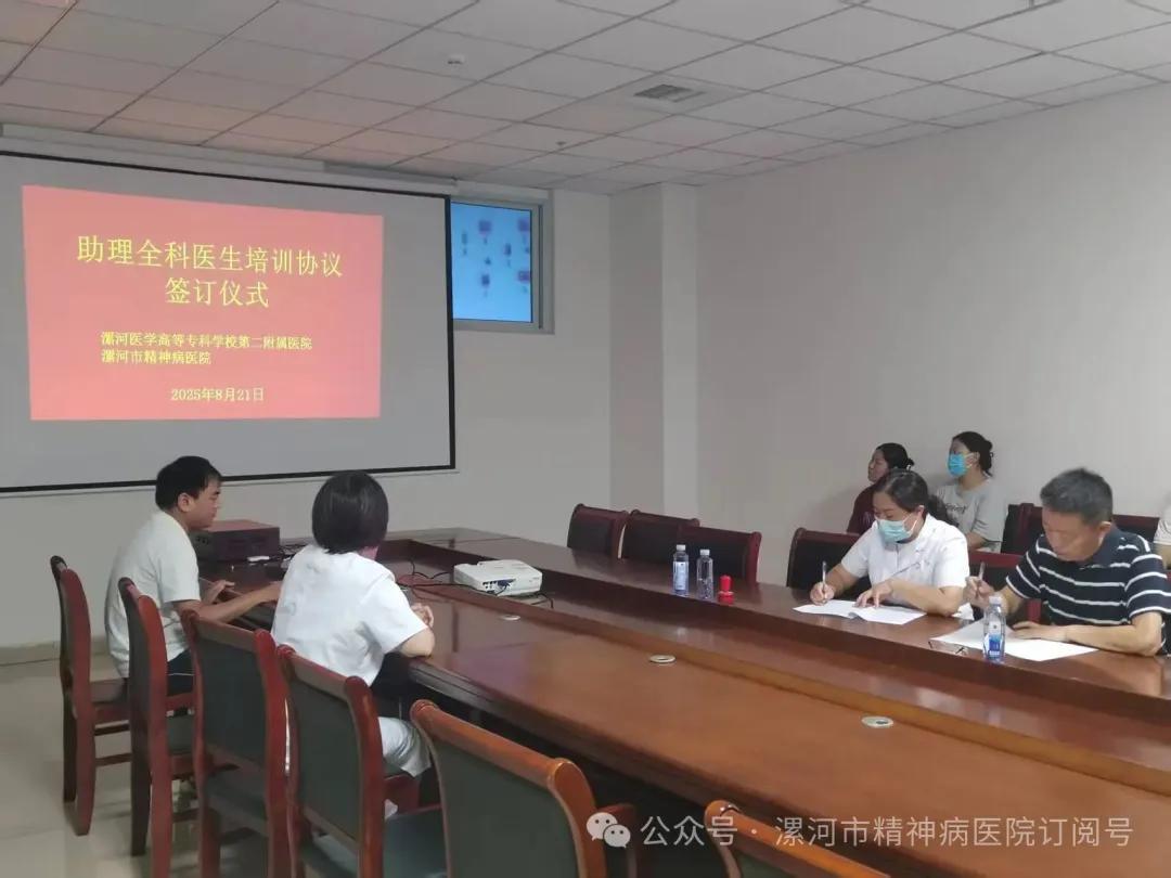 8月21日,漯河醫(yī)學(xué)高等專科學(xué)校第二附屬醫(yī)院劉國鋒書記及相關(guān)負(fù)責(zé)人帶領(lǐng)30余名助理全科醫(yī)生到漯河市精神病醫(yī)院開展參觀學(xué)習(xí)活動?,F(xiàn)場簽訂助理全科醫(yī)生培訓(xùn)合作協(xié)議,共同搭建理論與實(shí)踐相結(jié)合的學(xué)習(xí)平臺。