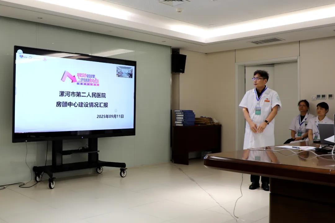 現(xiàn)場核查階段,市二院房顫中心負責人、心血管內(nèi)科病區(qū)主任李慧新從醫(yī)院基本情況、心血管內(nèi)科概況、房顫中心建設概況以及對房顫中心建設項目的建議四個方面進行了匯報。