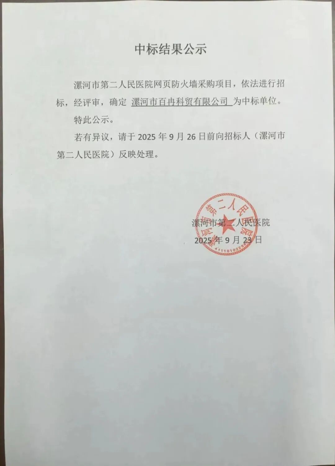 漯河市第二人民醫(yī)院:項(xiàng)目中標(biāo)公示