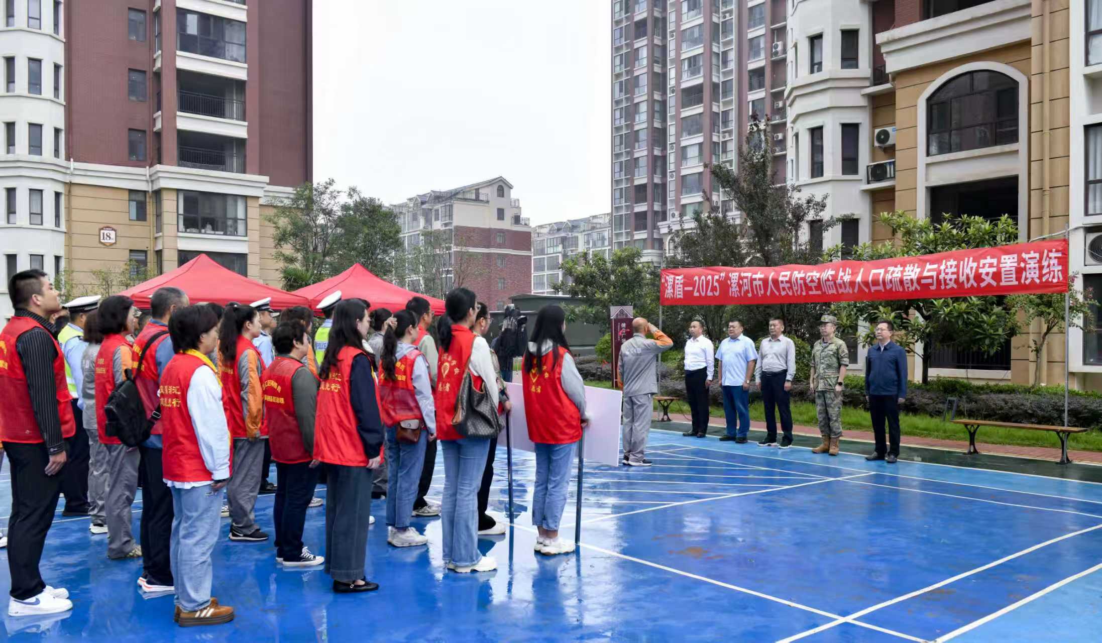 清晨的干河陳街道書香云璟小區(qū),寧靜祥和。9月12日上午9時,隨著演練指揮長、漯河市國動辦主任陳向凡一聲令下,一場高規(guī)格、大規(guī)模的人民防空臨戰(zhàn)人口疏散與接收安置實戰(zhàn)化演練正式拉開帷幕,將這片寧靜切換為一場關乎人民安全的實戰(zhàn)化考驗。