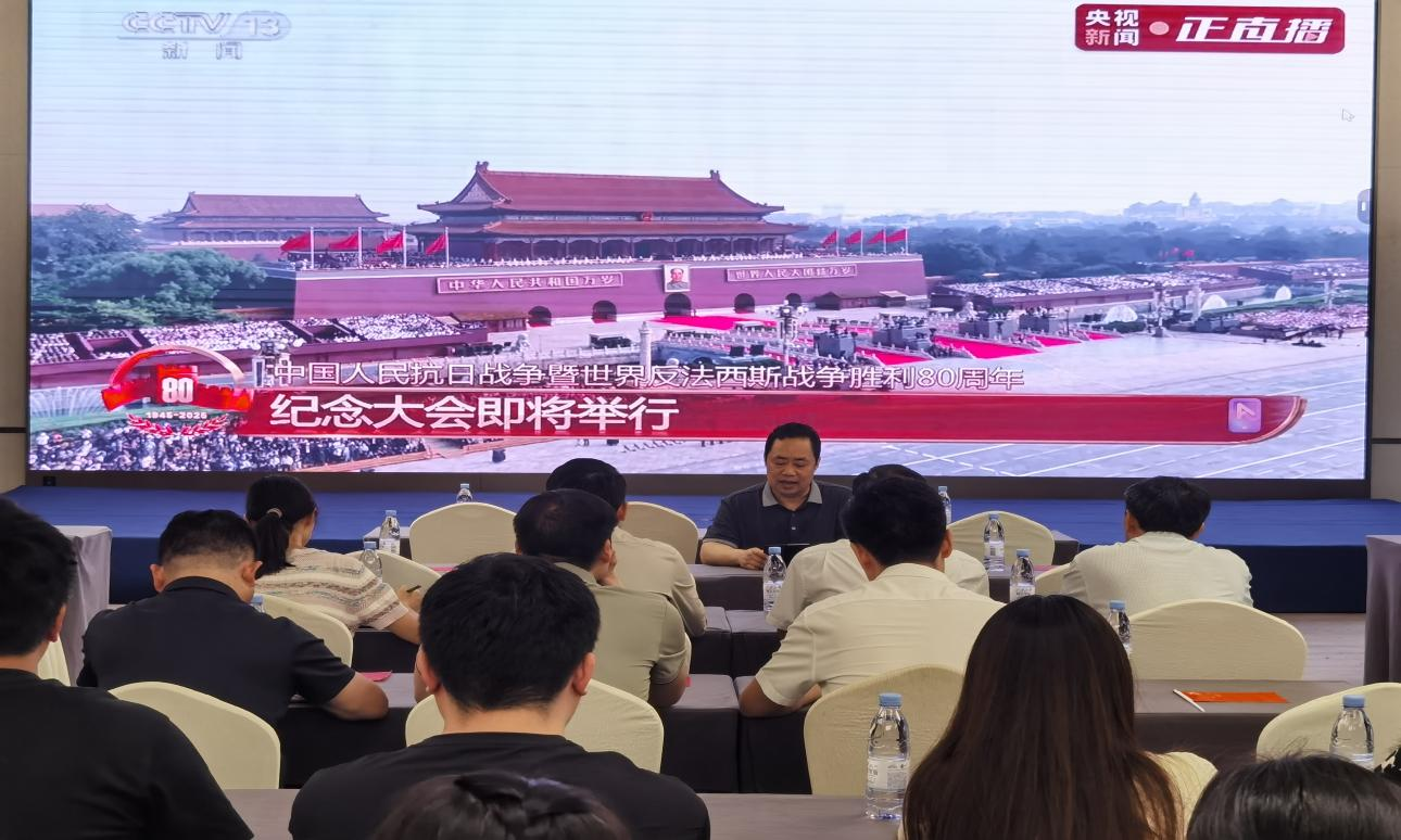 天安門廣場上,鐵流滾滾、戰(zhàn)機轟鳴;長安街兩側(cè),歡呼如潮、紅旗如海。9月3日上午,駐鄭聯(lián)絡中心全體黨員干部與駐鄭流動黨員代表齊聚海容酒店多功能廳,共同收聽收看紀念中國人民抗日戰(zhàn)爭暨世界反法西斯戰(zhàn)爭勝利80周年大會并觀看閱兵式,感受這一震撼人心的歷史時刻。