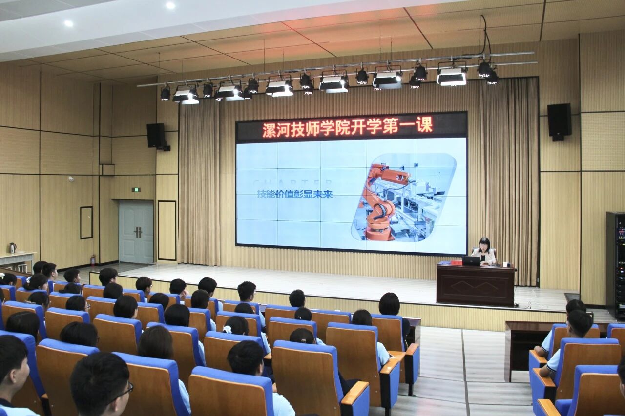 9月9日,漯河技師學(xué)院院長馮凱在潤德樓308報告廳以《技能照亮前程,勞模工匠領(lǐng)航》為題,為2025秋季新生講授“開學(xué)第一課”,以有高度、有深度、有情懷、有溫度的思想政治理論課形式,點燃漯技學(xué)子逐夢技能的報國熱情?;顒佑蓪W(xué)院黨委副書記范偉鋒主持。