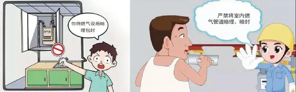 7.不要擅自安裝、拆除、改裝、遷移燃?xì)庠O(shè)施和燃?xì)馄骶?灶具、熱水器、采暖爐等),禁止私自拆改燃?xì)獗?。用戶如需進(jìn)行室內(nèi)裝修,不要封裝包裹燃?xì)獗?、燃?xì)夤艿?、閥門等燃?xì)庠O(shè)施,如有需要,請聯(lián)系供氣單位按照有關(guān)規(guī)范進(jìn)行施工。