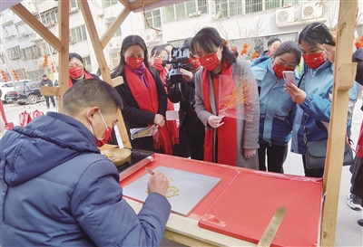 舞臺(tái)旁邊,寫(xiě)春聯(lián)、手工剪紙……各種民俗攤點(diǎn)讓居民挪不動(dòng)腳。帶著孫子逛大集的趙大爺說(shuō):“過(guò)年,就得是這個(gè)味兒!”
