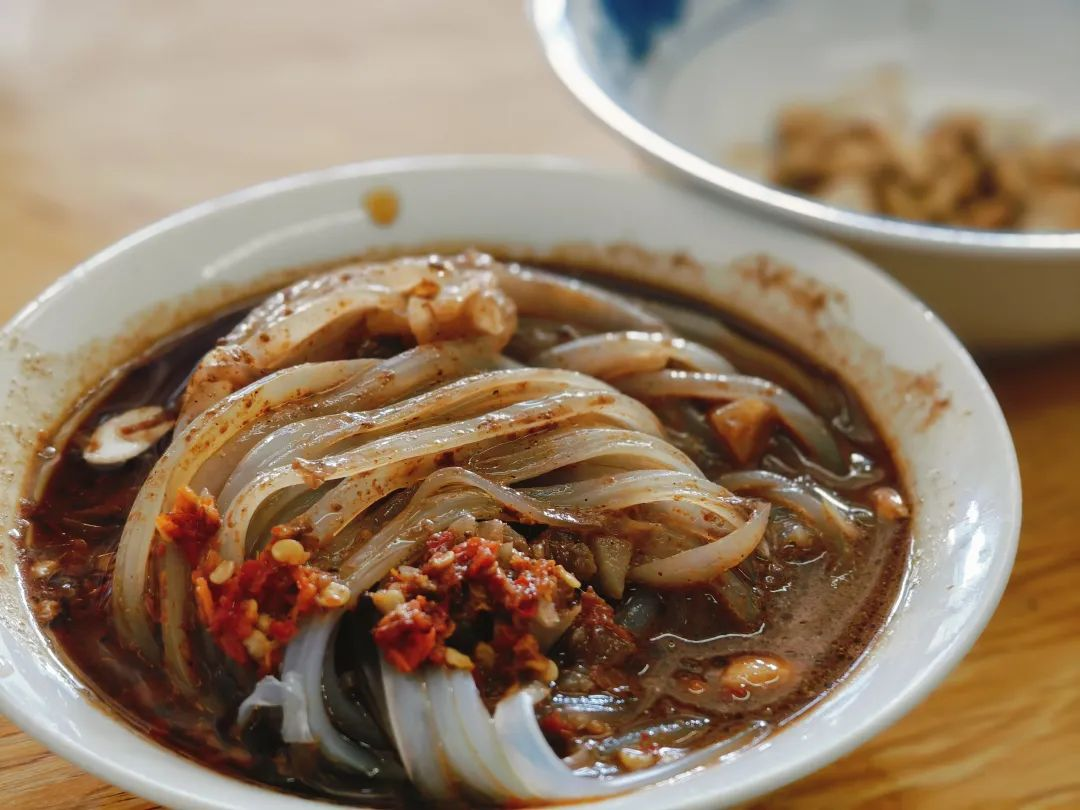 漯河涼粉的特色在于其獨特的工藝與風(fēng)味。不少家庭作坊至今仍堅持古法:用石磨細(xì)細(xì)研磨新鮮豌豆,經(jīng)過浸泡、磨漿、沉淀、熬煮等多道工序,這樣做出的涼粉格外筋道爽滑。調(diào)味上,漯河人也頗有心得,融合南北特色,常加入本地特有的藿香葉、荊芥等香草,調(diào)出酸辣爽口的“沙澧風(fēng)味”,與開封炒涼粉、靈寶一生涼粉等河南其他地方的涼粉風(fēng)味區(qū)別開來,成為胡辣湯、燴面之外漯河飲食文化中不可或缺的一環(huán)。