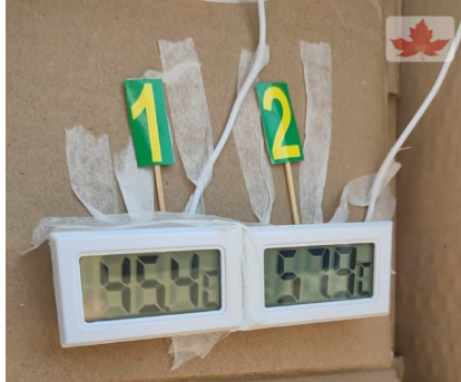 夏浩桐同學(xué)告訴記者:“去年秋天,我們觀賞紅楓葉時(shí),偶然發(fā)現(xiàn)路兩側(cè)的五角楓樹干出現(xiàn)了蛻皮壞死現(xiàn)象。寒假期間,我們又對整條路的五角楓進(jìn)行了全面觀察和統(tǒng)計(jì),發(fā)現(xiàn)壞死率竟然超過了65%。于是,我們就這個(gè)現(xiàn)象與學(xué)校張真老師進(jìn)行了討論。張老師非常支持,很快便成立了由她和我們四位學(xué)生組成的‘五角楓實(shí)驗(yàn)小組’。”“我們小組多次實(shí)地調(diào)查、現(xiàn)場測試后發(fā)現(xiàn),在夏季太陽直射下,五角楓樹皮西側(cè)和南側(cè)的溫度差異巨大。比如現(xiàn)在下午3點(diǎn),我們測得南側(cè)(1號(hào)線)電子測溫計(jì)顯示45.4℃,而西側(cè)(2號(hào)線)測溫計(jì)則顯示高達(dá)57.9℃,兩側(cè)溫差達(dá)到了12.5℃。”夏浩桐繼續(xù)說道,“我們小組經(jīng)過多次測試、記錄數(shù)據(jù),并查閱了大量資料,還借助了‘豆包’等AI工具進(jìn)行分析,最終發(fā)現(xiàn)了一些資料提到了‘日灼病’,即因太陽輻射溫度過高而導(dǎo)致的植物曬傷。我們認(rèn)為,這里的五角楓很可能就是患上了日灼病。”