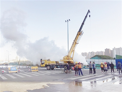 11月14日,在市區(qū)泰山路與嫩江路交叉口東南角,路邊擺放著“熱力施工 注意安全”的警示牌,在警示區(qū)域內(nèi),伴隨著機(jī)器的轟鳴聲,一根供熱管道排出濃濃的白色煙霧。這是漯河天陽供熱公司正在對具備運行條件的熱力管道進(jìn)行運行前的吹洗工作,以保證泰山路(嫩江路至黃河路)沿線用戶正常供暖。