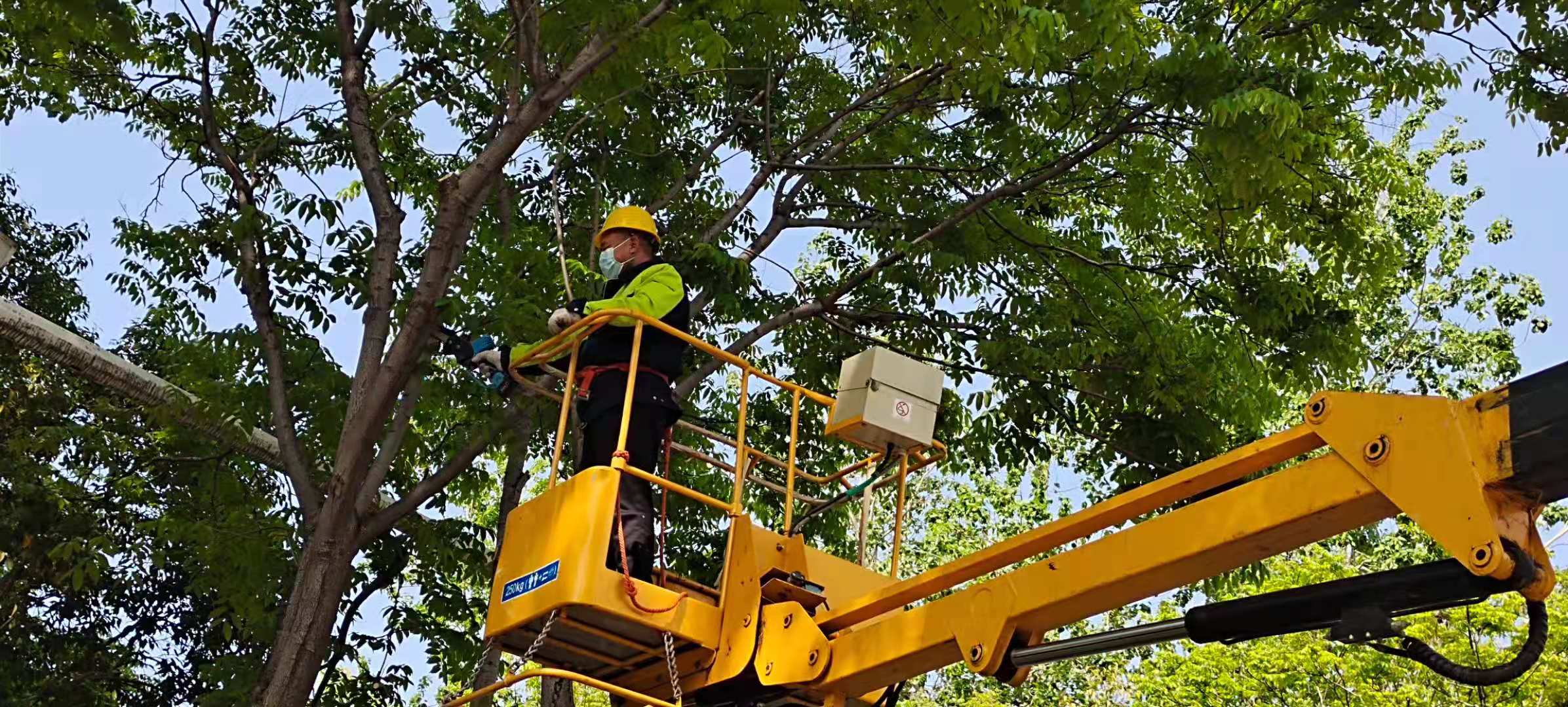 春夏交際,正是各類園林植物快速生長時(shí)期,市區(qū)多條道路的行道樹枝繁葉茂,出現(xiàn)部分行道樹的側(cè)枝遮擋道路交通信號(hào)燈、指示牌和智能攝像頭等交通配套設(shè)施現(xiàn)象。為確保市民安全通行,市園林中心對(duì)轄區(qū)主干道路口行道樹進(jìn)行了詳細(xì)排查,在兼顧綠化效果的同時(shí),制定了合理的修剪方案,于4月26日起,開始對(duì)19個(gè)路口45棵行道樹進(jìn)行修剪。