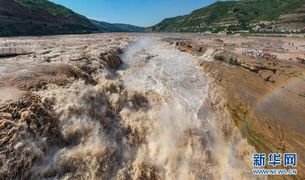 黃河壺口現(xiàn)“金色瀑布”