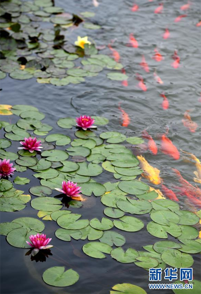 這是7月9日在位于石家莊市鹿泉區(qū)的龍泉湖濕地公園拍攝的荷塘景色。 位于河北省石家莊市鹿泉區(qū)的龍泉湖濕地公園,規(guī)劃面積5000余畝,是該市打造的較大規(guī)模城市濕地公園。近年來,石家莊市以“城在景中、景在城中、見山見水”的發(fā)展理念,將多年堆積廢物的垃圾溝改造成為水清草綠的生態(tài)濕地公園。昔日垃圾場變身“天然氧吧”,成為市民觀光、休閑、健身的好去處。 新華社發(fā)(陳其保 攝)