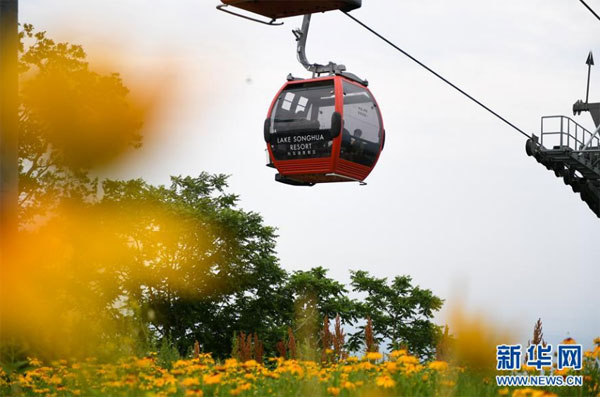 這是7月19日拍攝的吉林市萬科松花湖度假區(qū)的纜車。 夏日時節(jié),吉林省吉林市的萬科松花湖度假區(qū)利用滑雪場的地形優(yōu)勢,增添了高山花海、彩虹滑道等休閑旅游項目,吸引游客前來觀光游覽。 新華社發(fā)(顏麟蘊攝)
