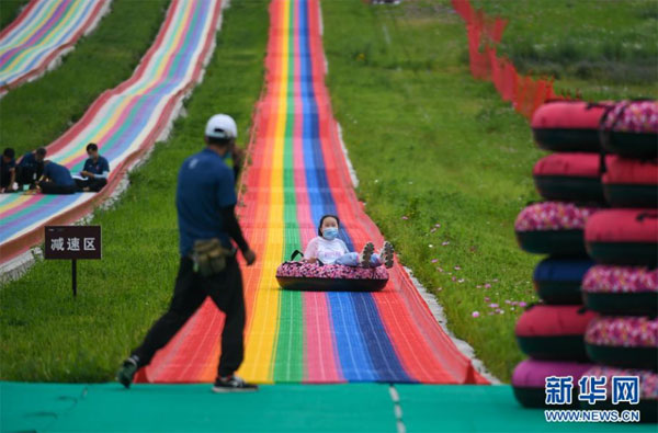 7月19日,游客在吉林市萬科松花湖度假區(qū)的彩虹滑道玩耍。 夏日時節(jié),吉林省吉林市的萬科松花湖度假區(qū)利用滑雪場的地形優(yōu)勢,增添了高山花海、彩虹滑道等休閑旅游項目,吸引游客前來觀光游覽。 新華社發(fā)(顏麟蘊攝)