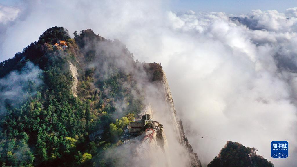 云霧中的華山(4月28日攝,無人機(jī)照片)。