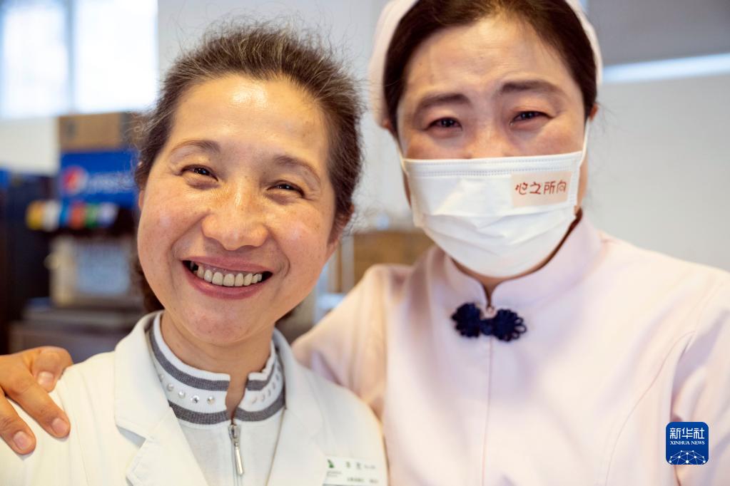 5月11日,在北京按摩醫(yī)院舉行的國際護(hù)士節(jié)慶?;顒?dòng)上,工作15年的護(hù)士鄭君霞(右)哭著與當(dāng)年剛工作就帶著自己的護(hù)士李欣老師合影留念。