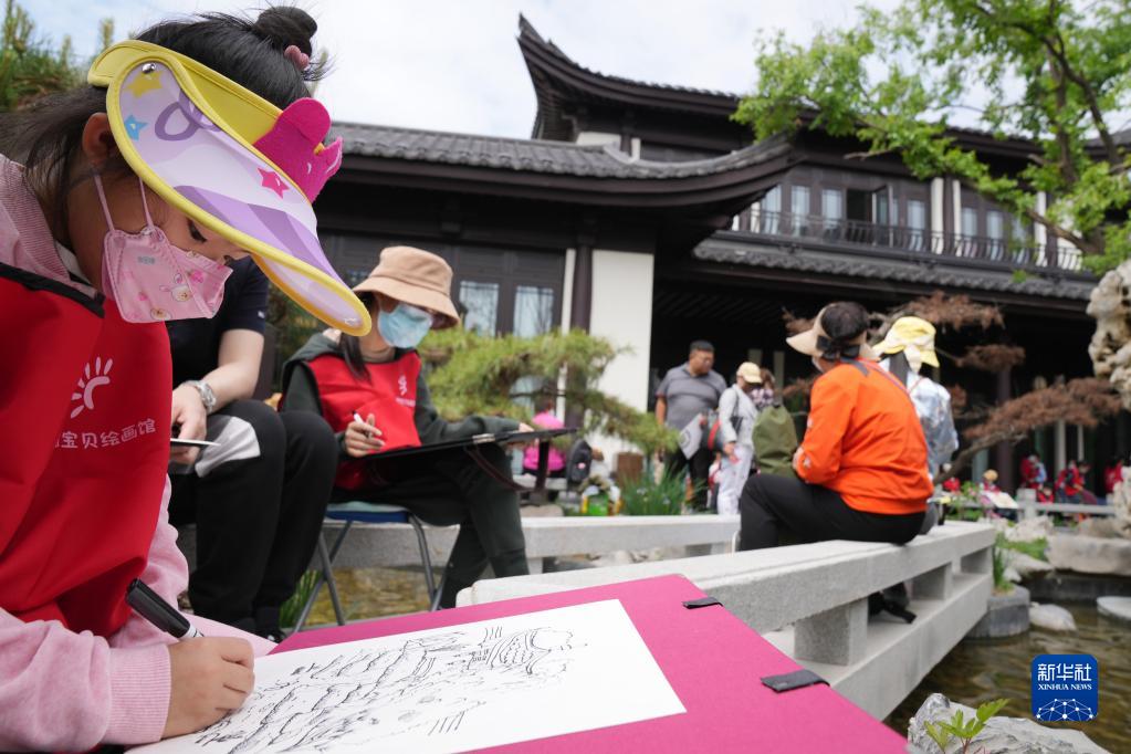 6月1日,孩子們在哈爾濱市松北區(qū)一景點寫生。