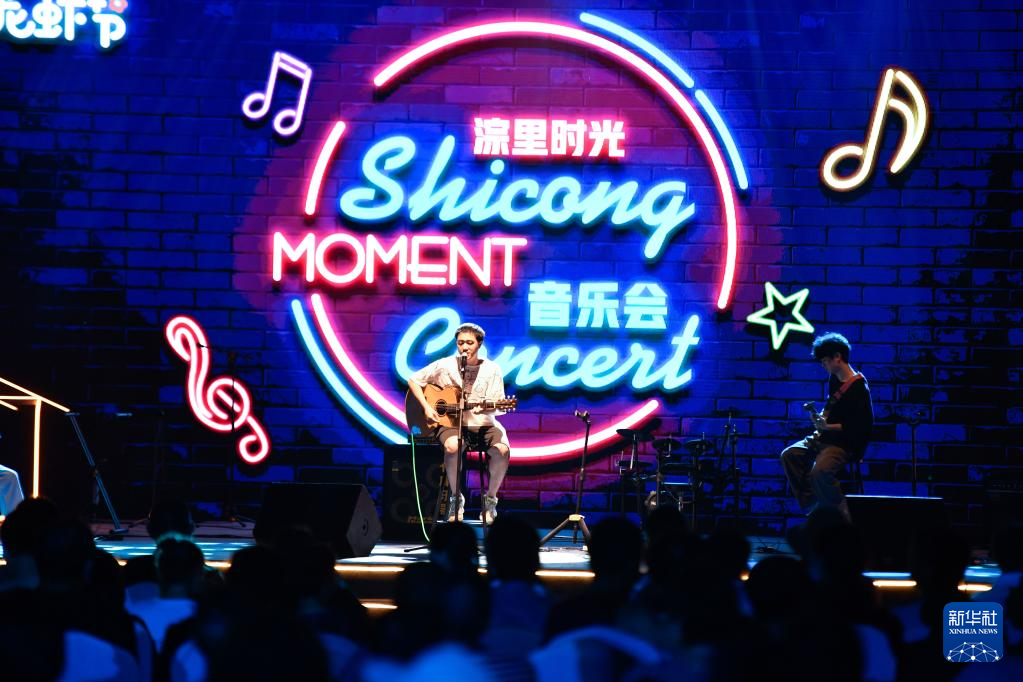 6月1日,歌手在石淙花海龍蝦節(jié)的“時(shí)光音樂會”上演唱。