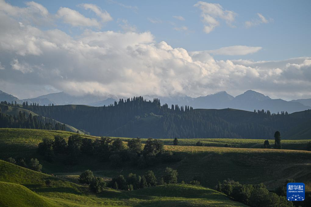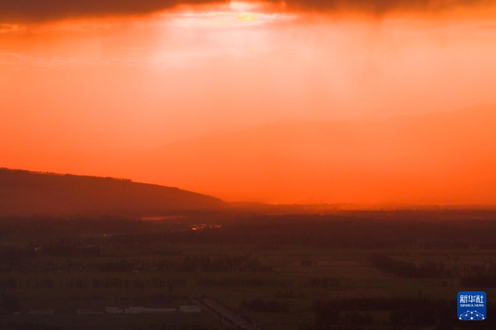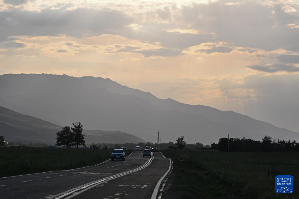 這是8月3日在那拉提草原拍攝的晚霞(無人機照片)。