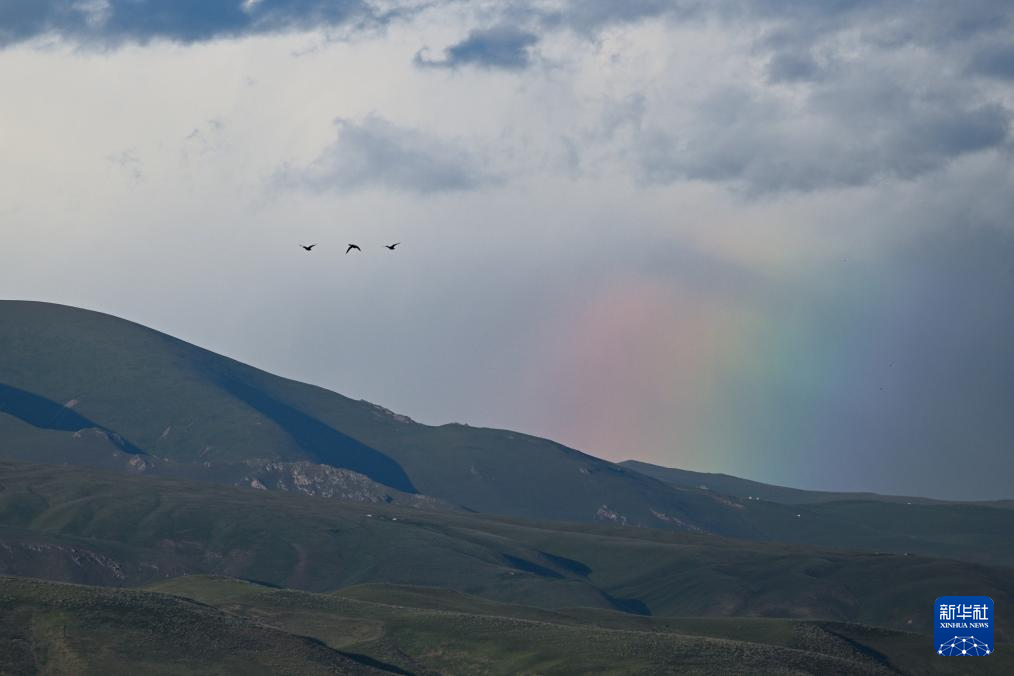 8月3日,一道彩虹出現在那拉提草原的上空。