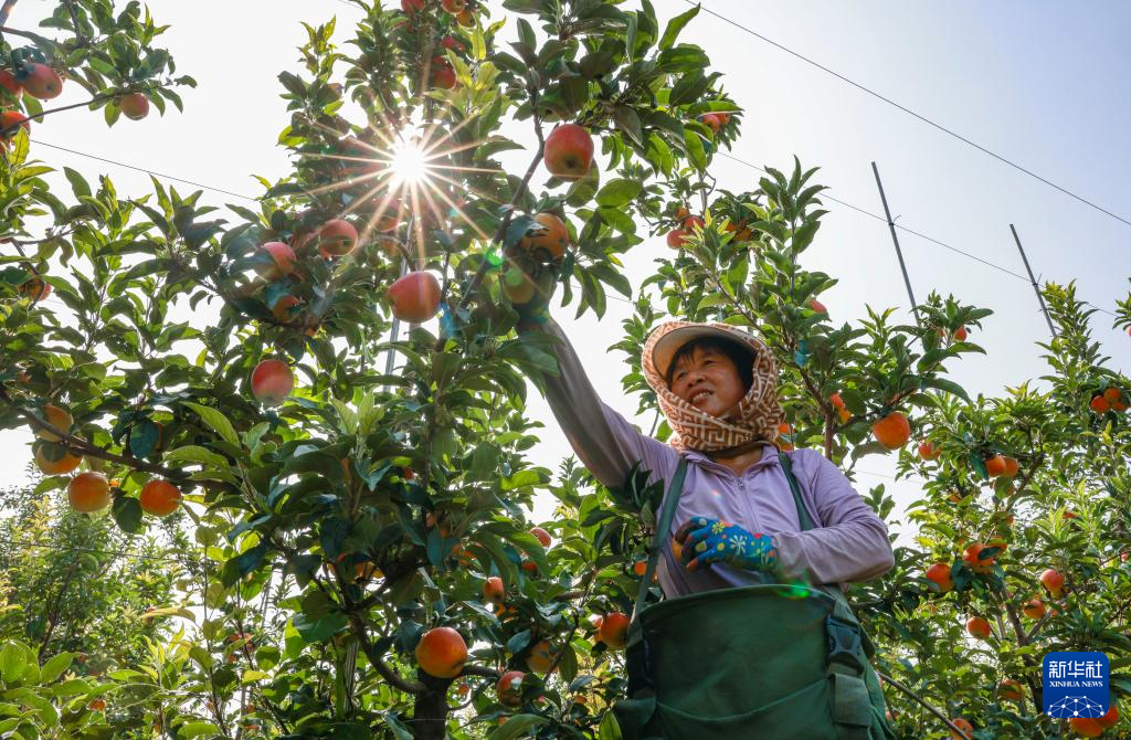 8月7日,果農(nóng)在山東省東營市廣饒縣大王鎮(zhèn)的一處蘋果種植基地內(nèi)采摘蘋果。