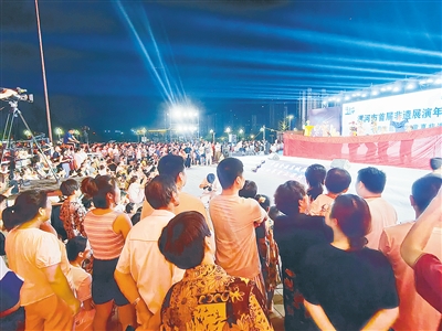 7月12日晚,西城區(qū)市民之家南門廣場(chǎng)燈火璀璨、人潮涌動(dòng)。漯河市首屆非遺展演年活動(dòng)七月第二場(chǎng)展演在此拉開帷幕。演出以“童真非遺”為主題,將我市兩個(gè)極具代表性的非遺項(xiàng)目——嗩吶咔戲與木偶戲搬上舞臺(tái),以童趣化演繹展現(xiàn)傳統(tǒng)藝術(shù)的魅力。