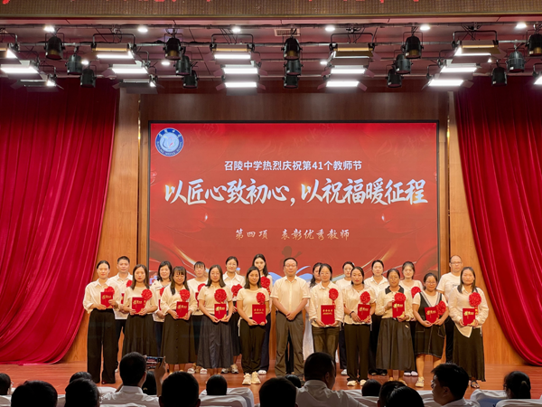 丹桂飄香滿(mǎn)校園,師恩如歌潤(rùn)心田。2025年9月10日下午,召陵中學(xué)慶祝第41個(gè)教師節(jié)表彰大會(huì)在報(bào)告廳隆重舉行。全體師生齊聚一堂,以最真摯的敬意與熱烈的掌聲,致敬耕耘在教育一線(xiàn)的園丁,共同唱響“以教育家精神鑄魂強(qiáng)師,譜寫(xiě)教育強(qiáng)國(guó)建設(shè)華章”的時(shí)代主旋律。